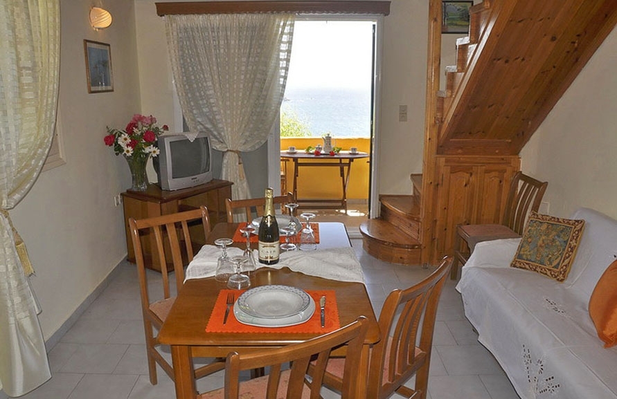 The maisonettes have a well-equipped kitchen, a dining room, a sofa/bed and panoramic views.